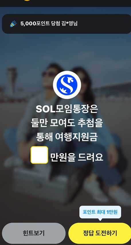 sol 모임통장은 둘만 모여도 추첨을 통해 천만원을 드려요