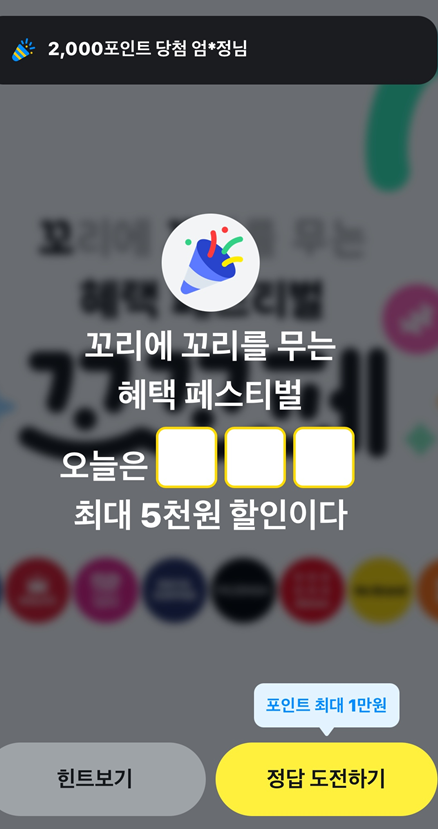 - 퀴즈에 성공하면 보통 카카오페이 포인트 또는 기타 리워드를 받을 수 있습니다.