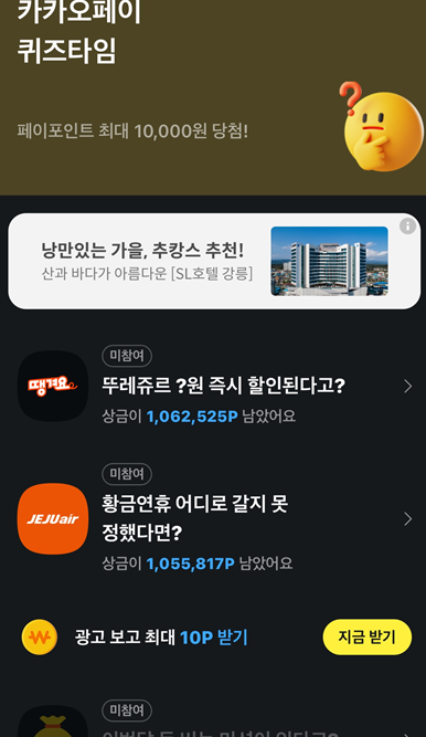 - 카카오톡 앱에서 '카카오페이' 서비스를 선택하거나, 퀴즈 관련 알림 메시지를 통해 접근할 수 있습니다.