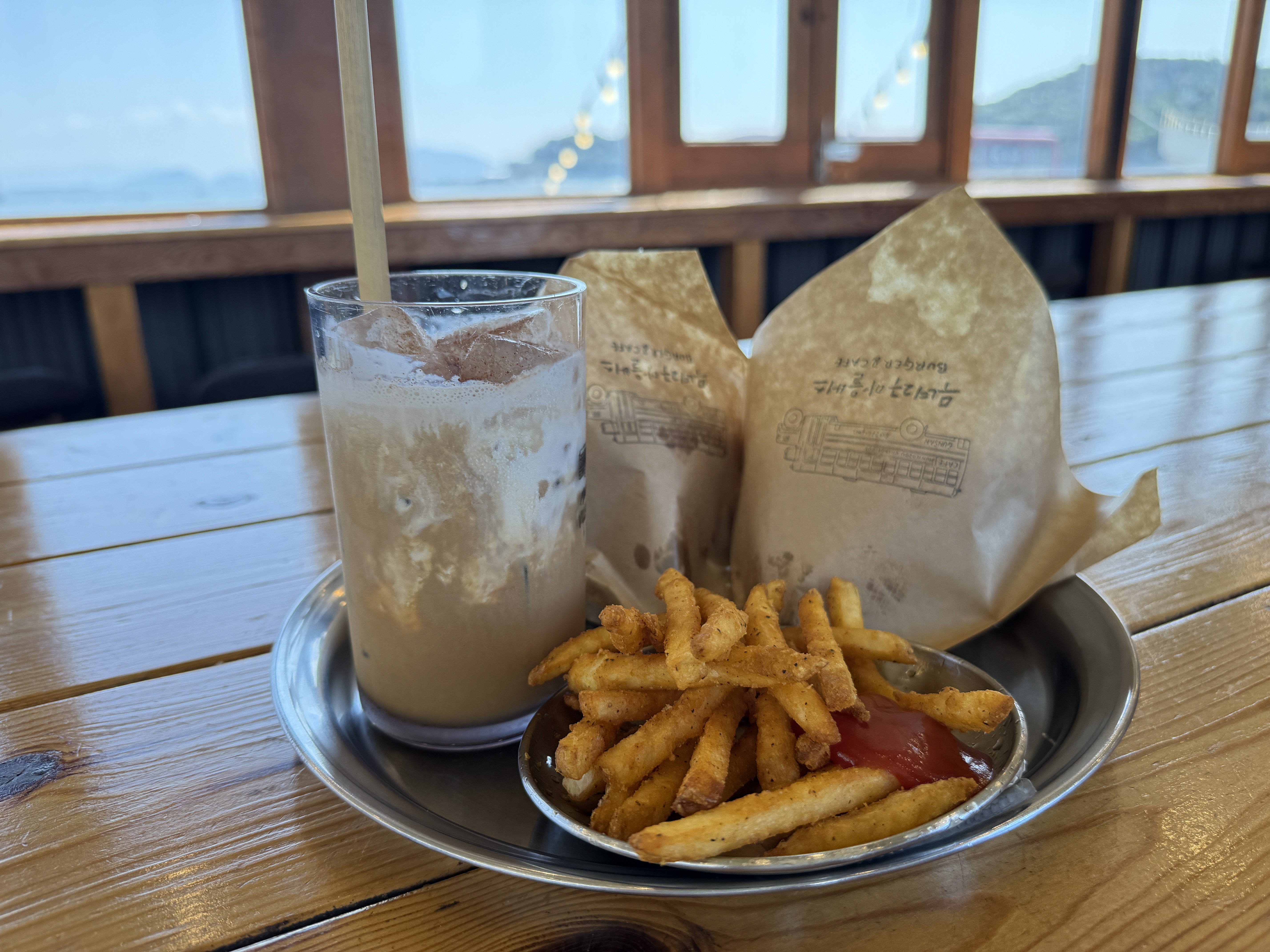 “한 끼를 넘어 여행의 장면이 되는 카페.” 독특한 버스 테마와 선유도 바다 전망, 그리고 탄탄한 수제버거까지. 가격은 다소 있는 편이지만 분위기+맛+사진 세 박자를 모두 챙기고 싶다면