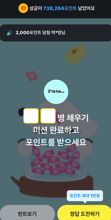 캔디병 채우기 미션 완료하고 포인트를 받으세요
