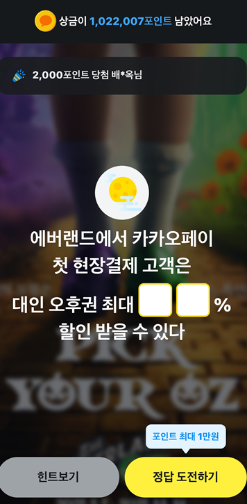 - 퀴즈에 성공하면 보통 카카오페이 포인트 또는 기타 리워드를 받을 수 있습니다.