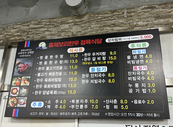 - 추천메뉴: 육회비빔밥(특) 13,000원 / 한우탕 11,000원 , 소고기