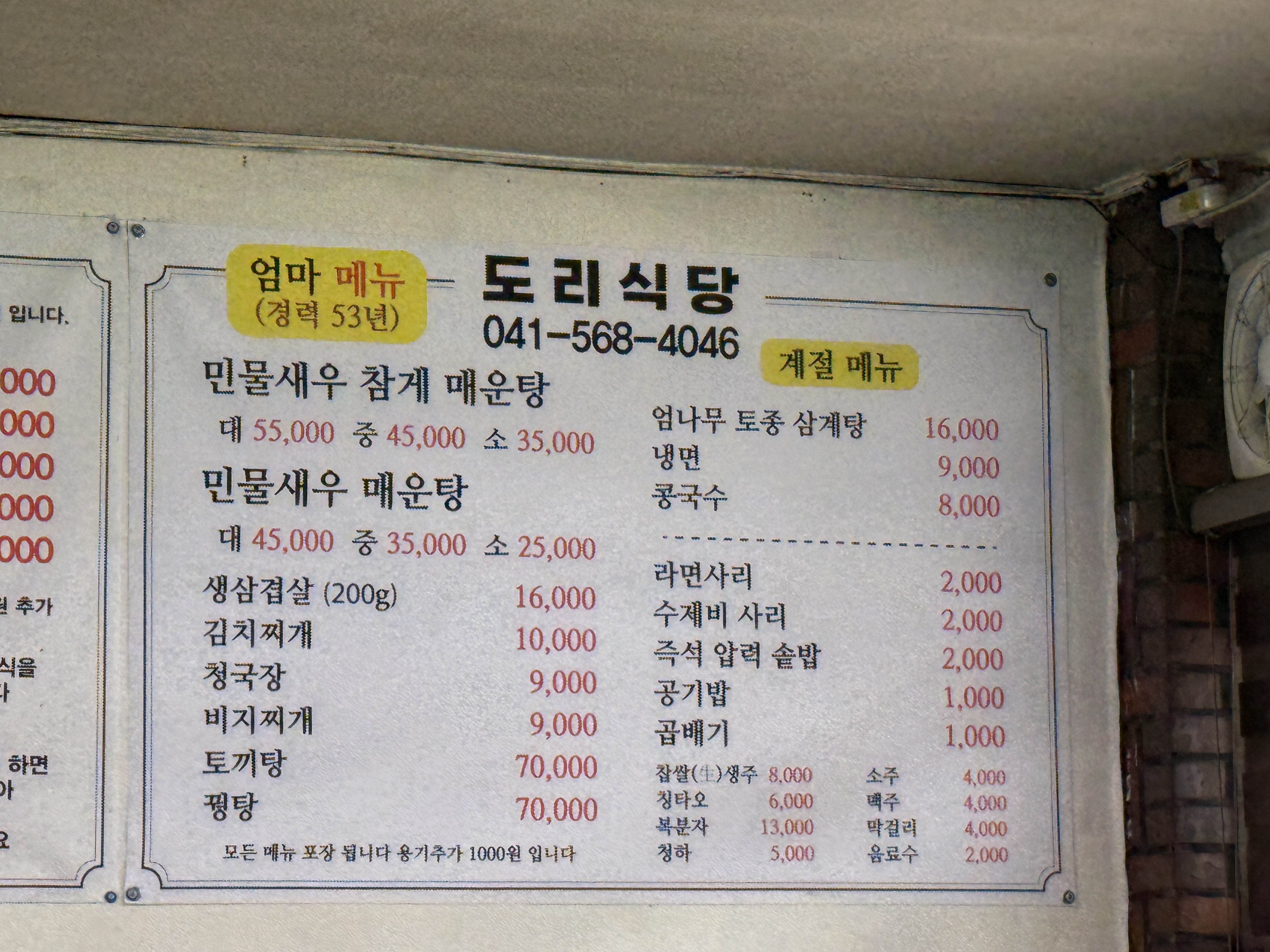천안 광덕면에 위치한 명산 100인 광덕산을 찾아가는 길에 우연히 방문한 곳 '도리식당'입니다. 계획 없이 들어간 집에서 뜻밖의 맛을 만나면, 기쁨이 배가 됩니다. 막상 가게 외관을 처음 보면 헷갈립니다. 중국집 메뉴도 보이고, 한식 메뉴도 함께라서 정체가 불분명합니다. 알고보니 재밌는 이야기를 가진 식당입니다. 한식 중식 모두 하는 곳인데 한식은 엄마가 셰프, 중식은 아들이 셰프입니다. 모자의 요리 경력만 해도 도합 90년이 넘는다니 내공이 장난 아닌곳입니다.