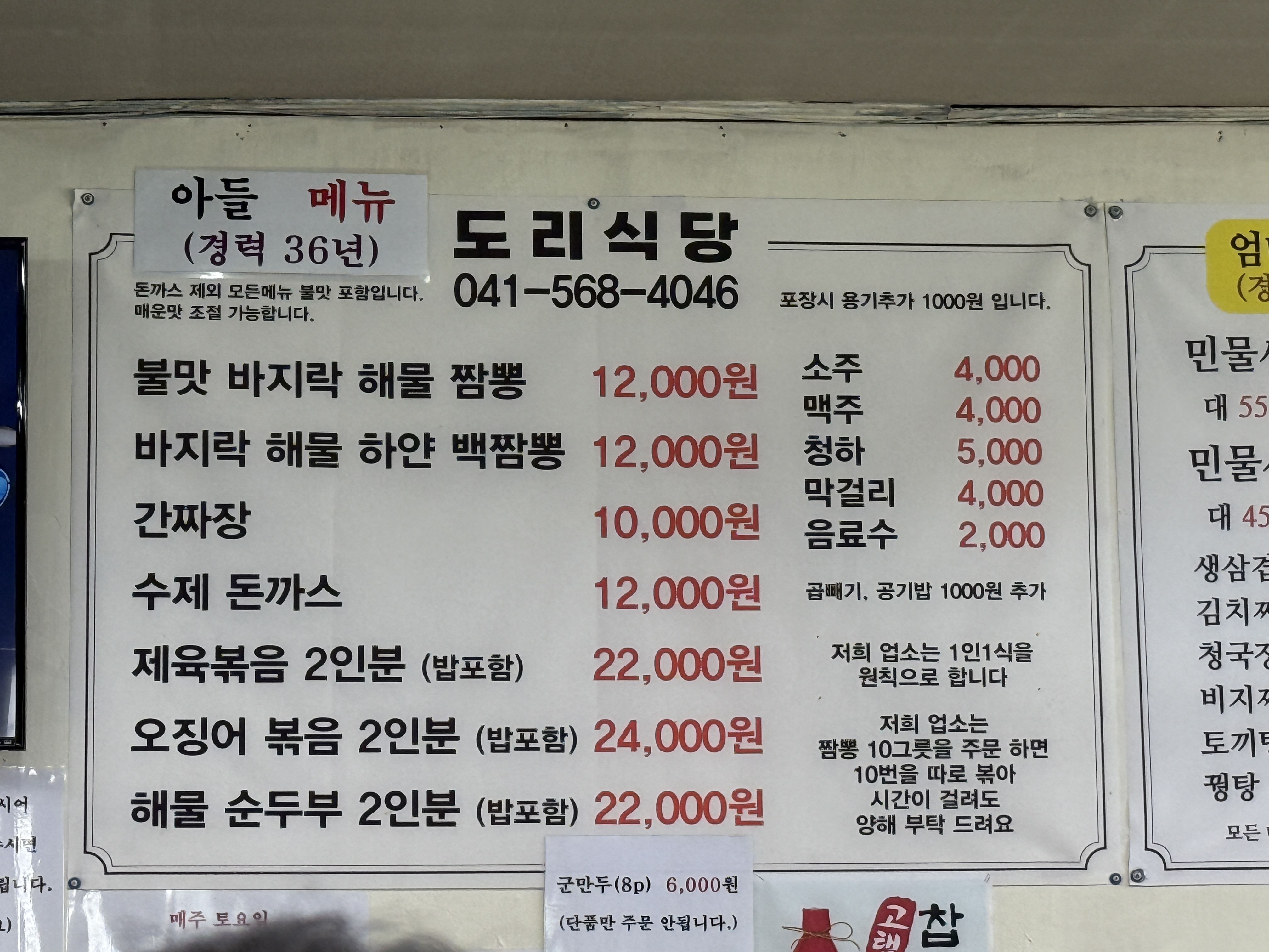 메뉴를 보시면 아들 메뉴와 엄마 메뉴가 명확하게 구분됩니다. 중요한 건 두 메뉴다 맛이 장난 아니라는!!