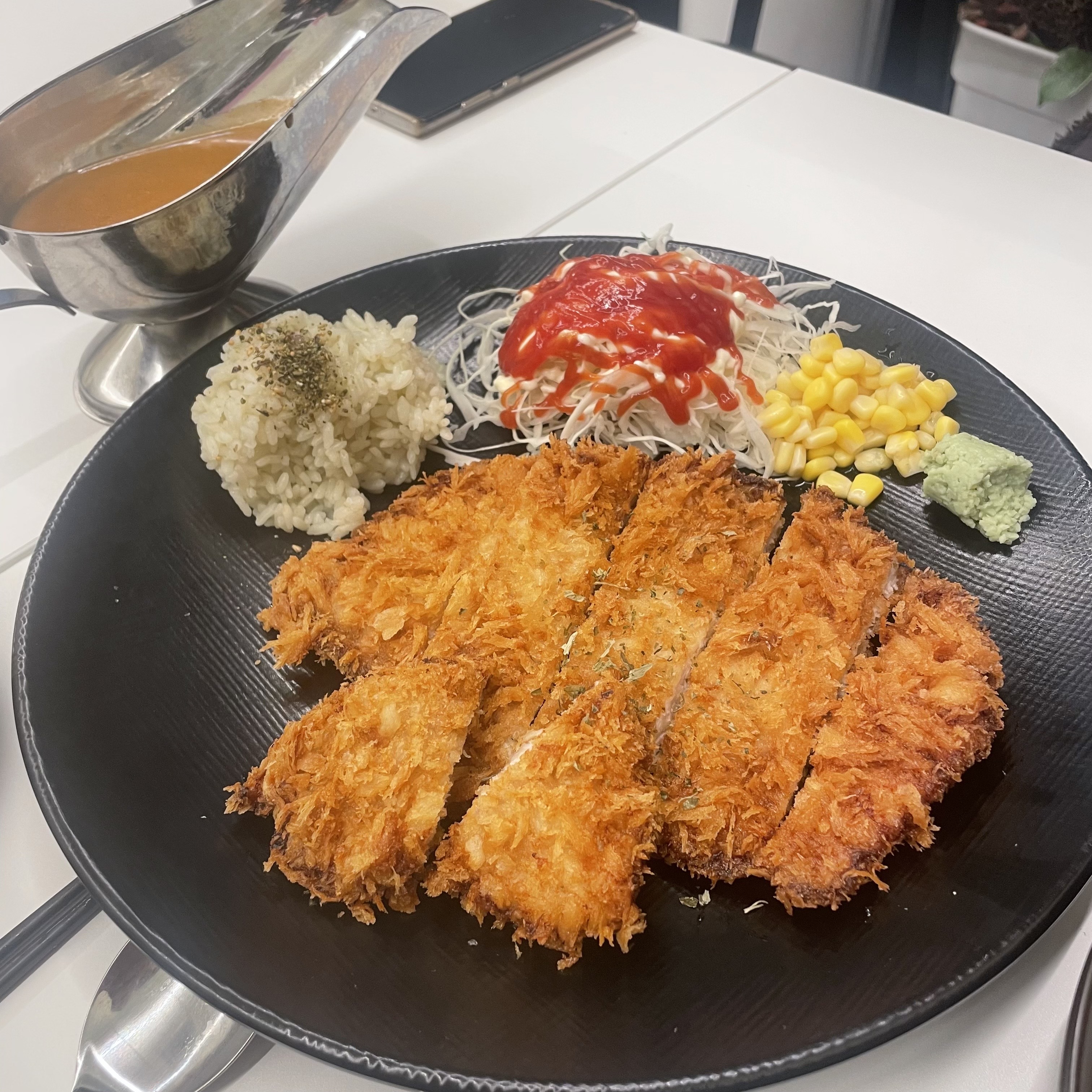 다음은 수제 왕등심돈까스가 나왔습니다. '점드락' 돈까스는 경양식 돈까스인데... 왠만한 돈까스 전문점보다 맛납니다. 고기가 정말 부드러우면서도 쫄깃한게 씹는 맛이 있더라구요. 돈까스를 정말 좋아하는 저에게 '점드락' 돈까스.. 너무 좋더라구요. 소스는 뚜껑열린 알라딘 요술램프같은 곳에 담겨 옵니다. 찍먹파 부먹파는 기호껏 드시면 될 것 같아요. 경양식 돈까스를 좋아하시는 분들이라면 점드락 돈까스 한번 드셔보세요!!