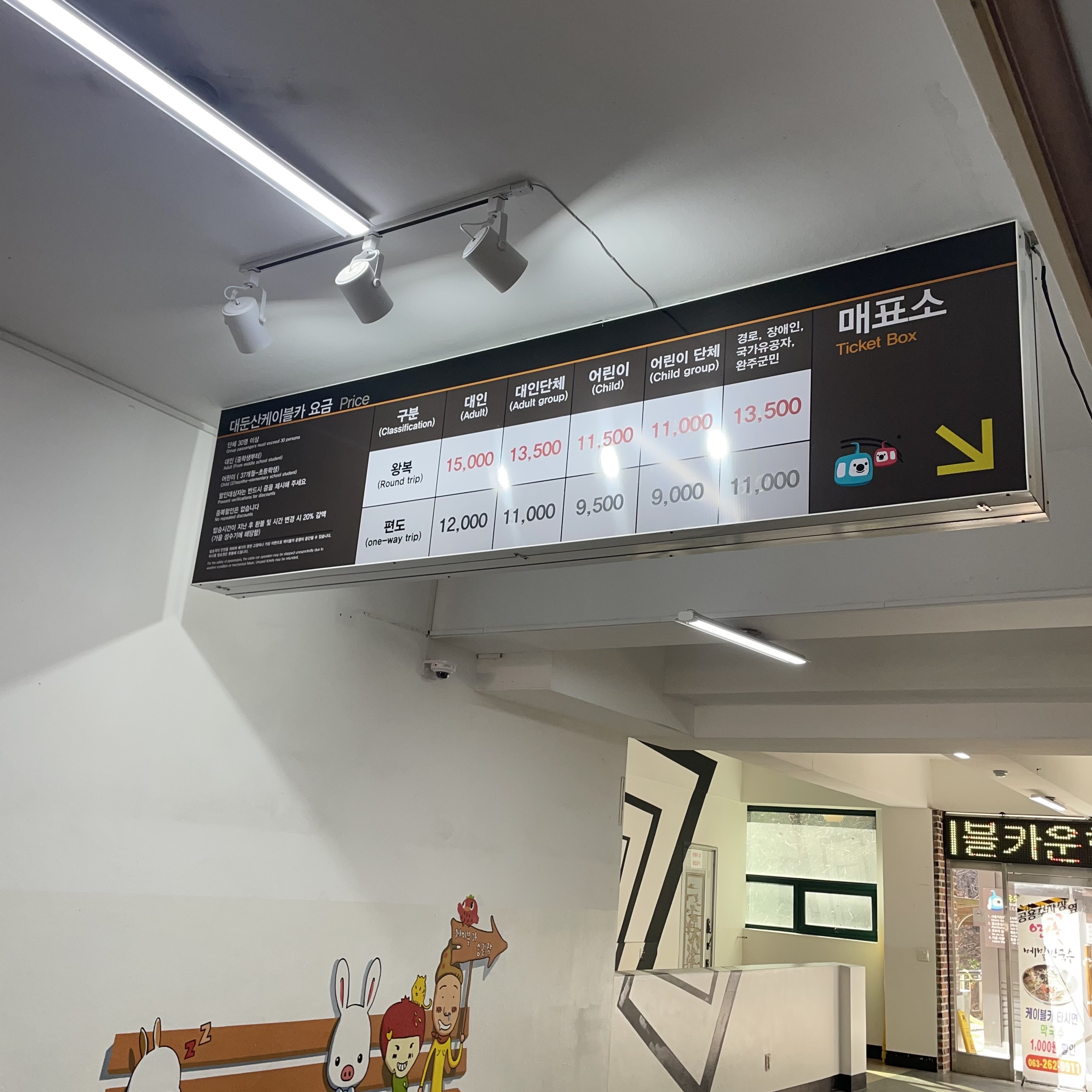 - 케이블카 요금: 왕복 - 15,000원, 편도 - 12,000