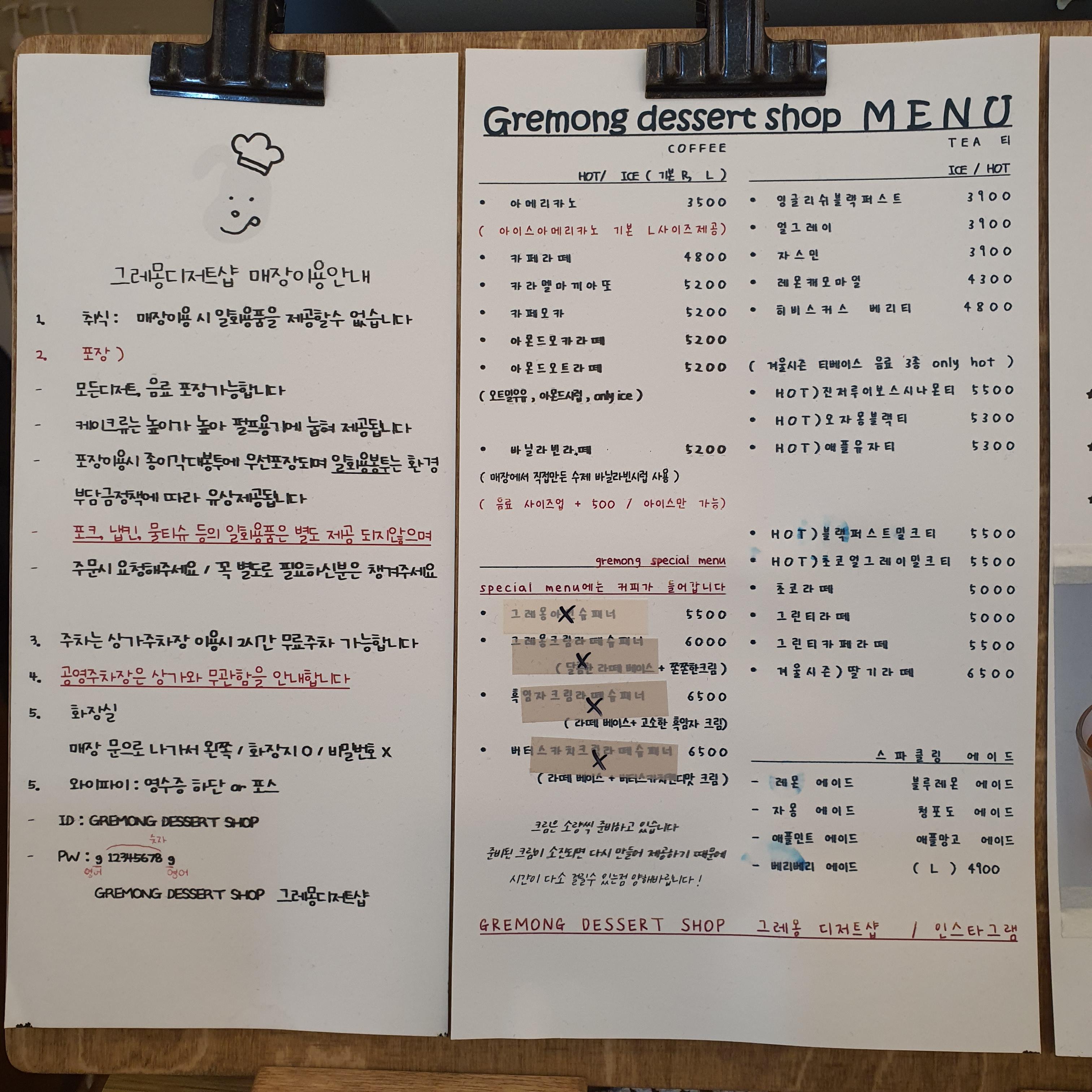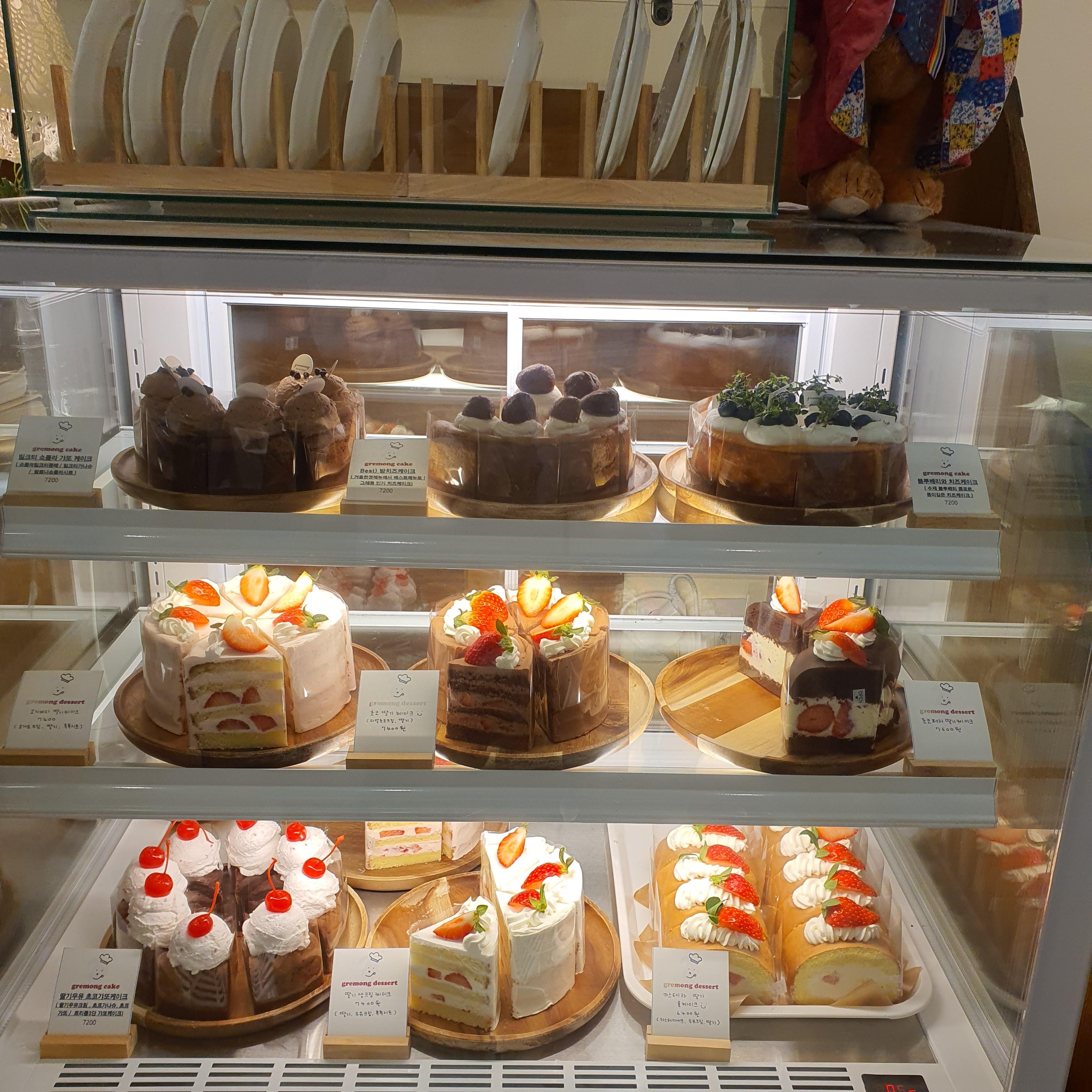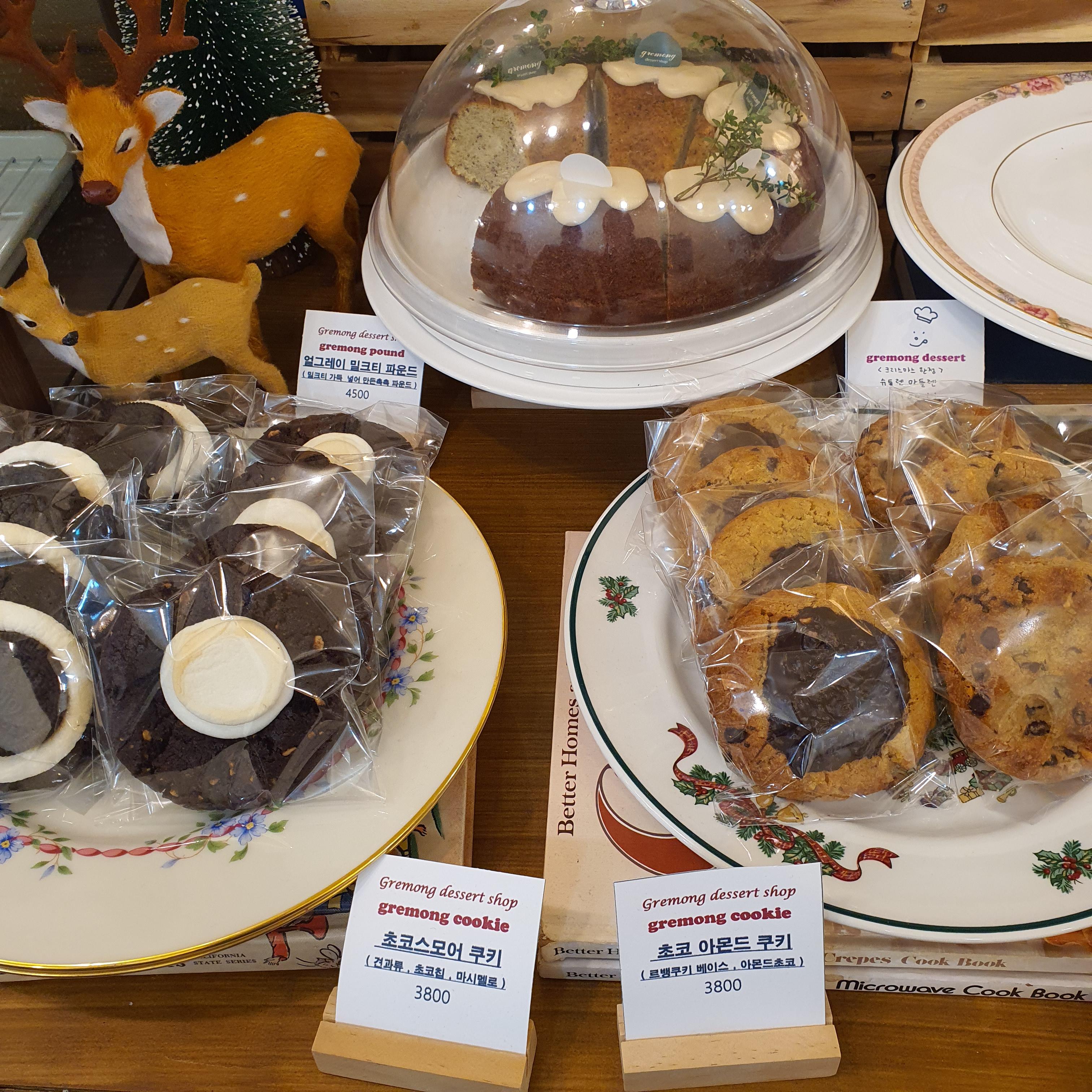 그레몽디저트 샵은 케이크과 쿠키를 직접 만드는 디저트 카페입니다. 실내에 들어서면 정말 다양한 디저트들에 시선을 빼앗깁니다. 커피마시러 갔다가 저도 모르게 디저트를 먹을 수 밖에 없는 그런곳이죠.ㅎ 정말 위험한 곳입니다. 음료들은 다른 카페와 다름없어요. 제가 이곳을 추천하고 싶은 건 케이크와 쿠키들 때문이에요.