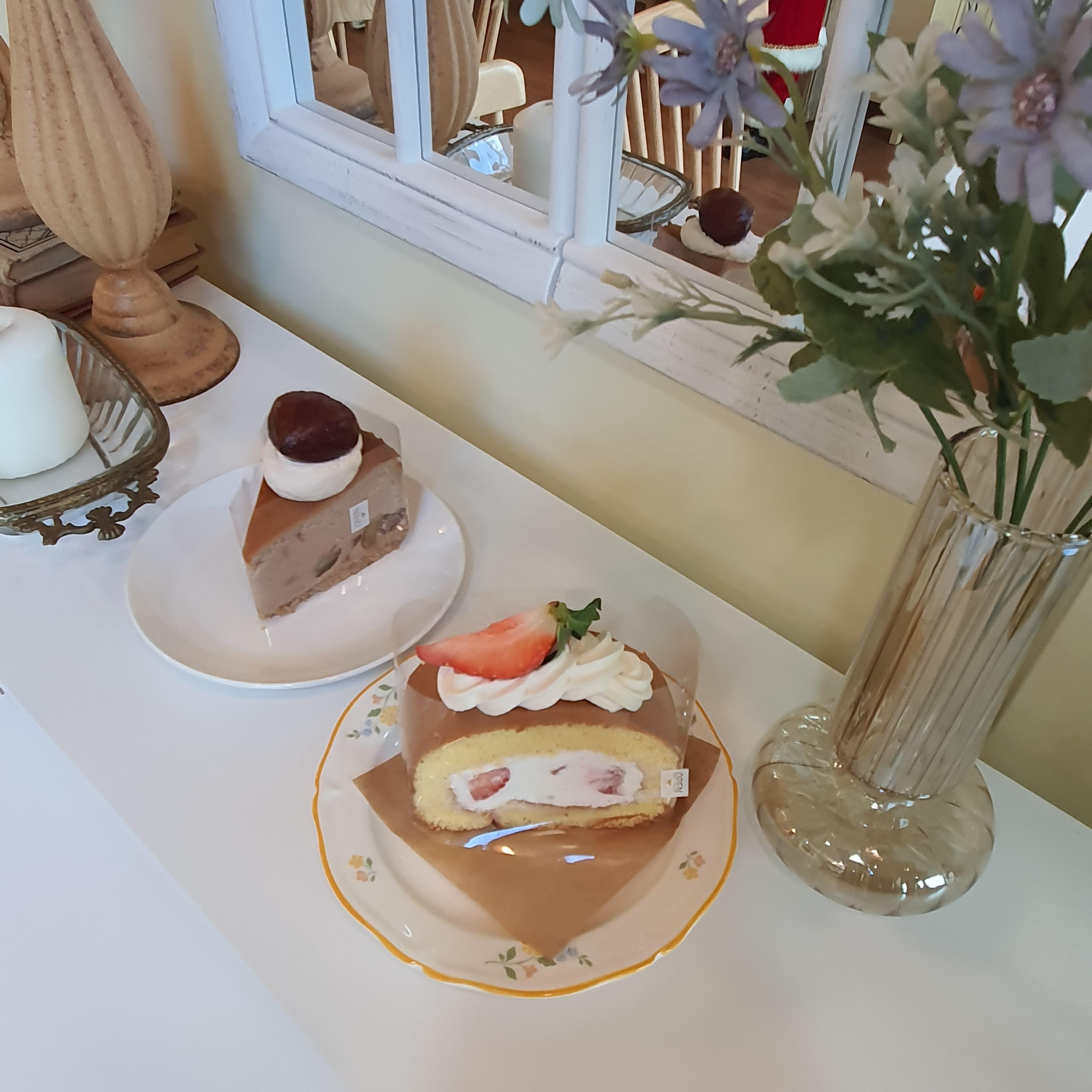 다 맛있어 보여서 다 먹어보고 싶었는데.... 그럴순 없으니. 고민끝에 저흰 밤치즈 케이크와 카스테라 딸기 케이크를 주문해 봤습니다. 케이크의 종류가 정말 다양합니다. 케이크 외에도 쿠키들도 정말 맛있어 보였는데.... 다 먹을 수 없는게 너무 아쉽네요. 달달이들의 성지라 할 수 있겠어요 여긴.!