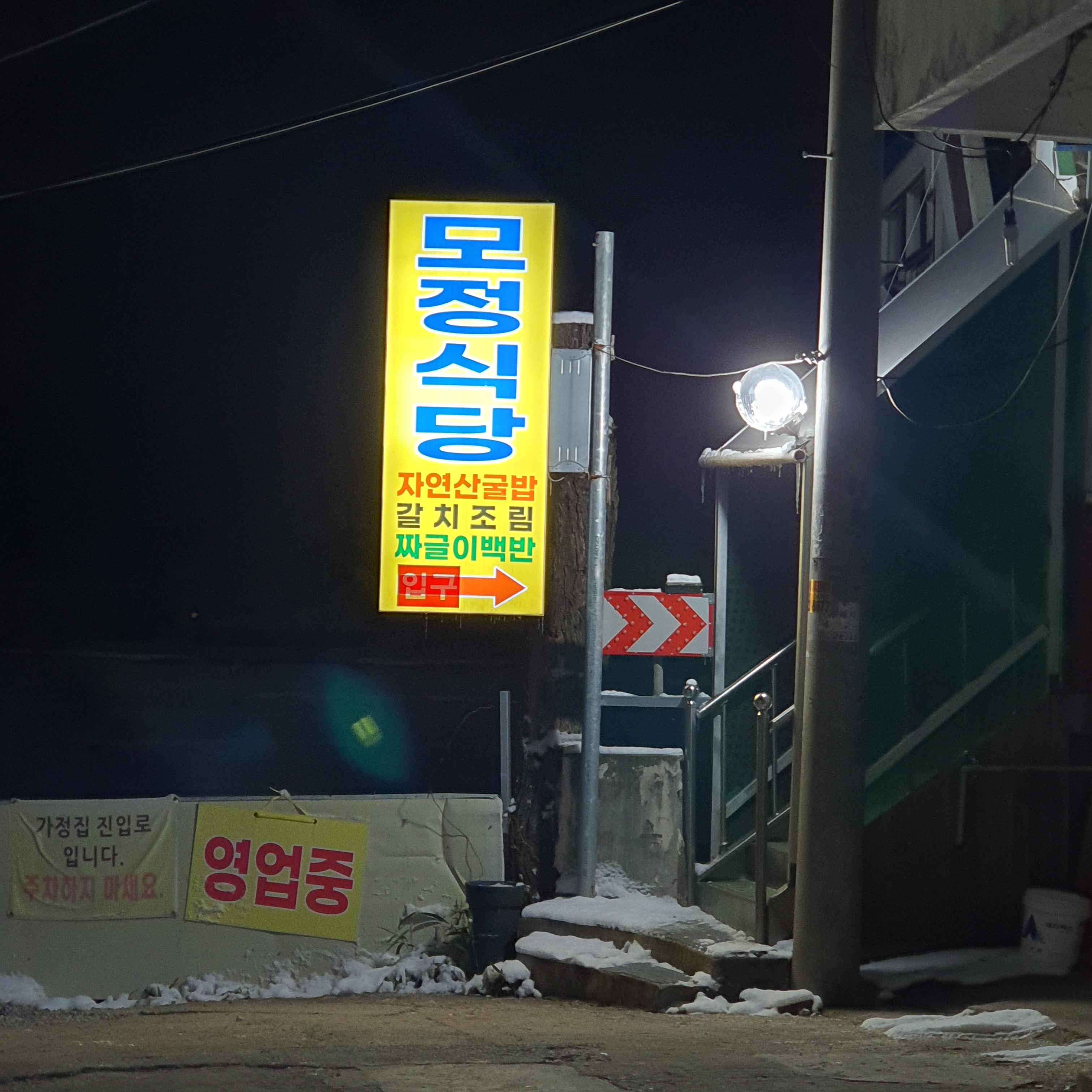 '모정식당'은 다양하고 맛있는 밑반찬들과 함께 든든하게 한끼를 먹을 수 있는 백반집입니다. 모정식당은 주 메뉴들이 모두 맛있기로 소문난 곳입니다. 갈치조림, 짜글이, 제육볶음, 굴밥이 모두 유명한 곳입니다. 예약이 가능한 곳으로 예약을 하면 시간에 맞춰 음식들이 세팅되어 바로 식사가 가능합니다. 저희는 겨울철 제철음식 굴밥을 주문해보았어요.