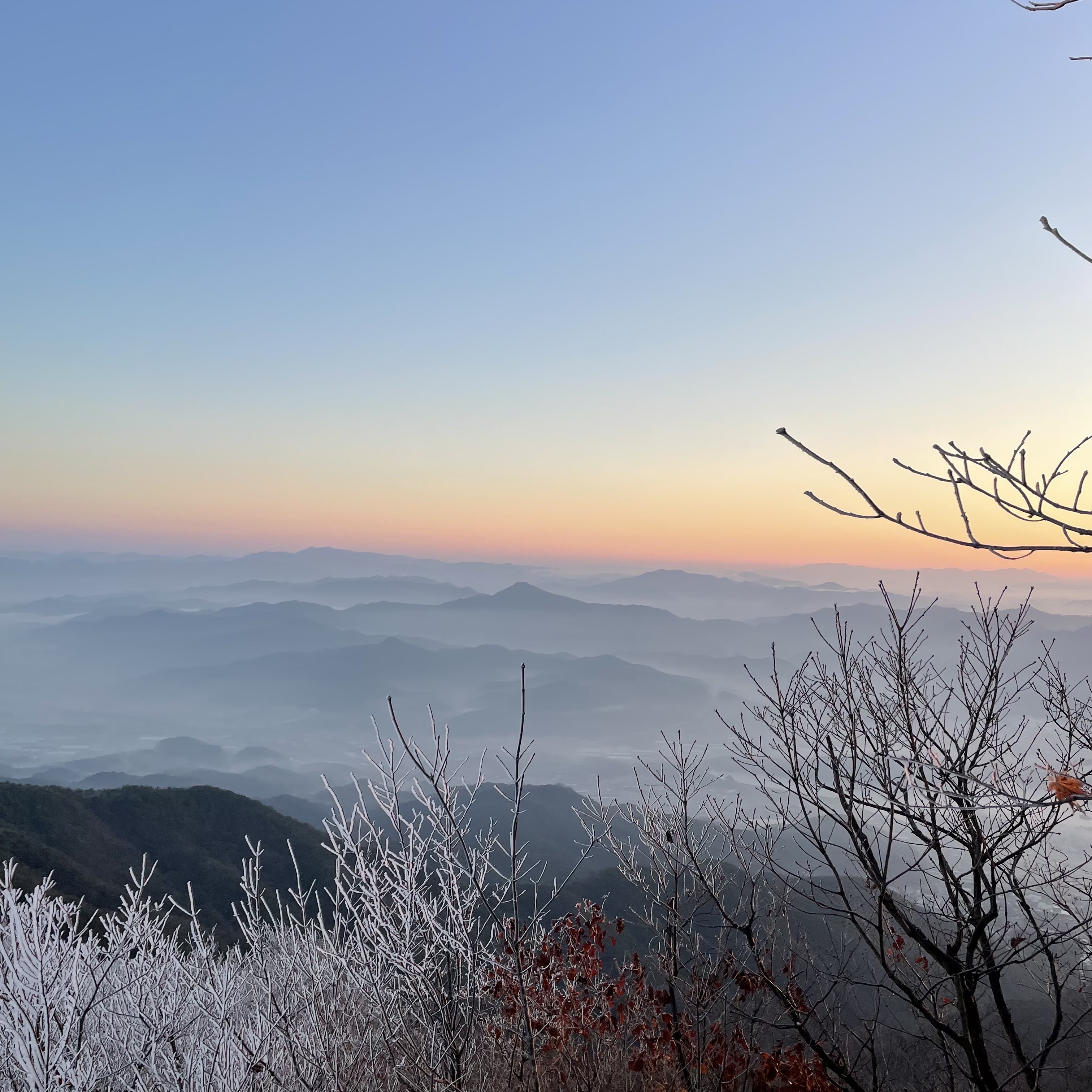 이런 예쁜 능선을 따라 가면 방송국 건물과 함께 있는 모악산 정상석을 만날 수 있을 거에요~. 일출 산행이지만 사람들에 치여 구석탱이에서 일출을 맞이했네요.ㅎ