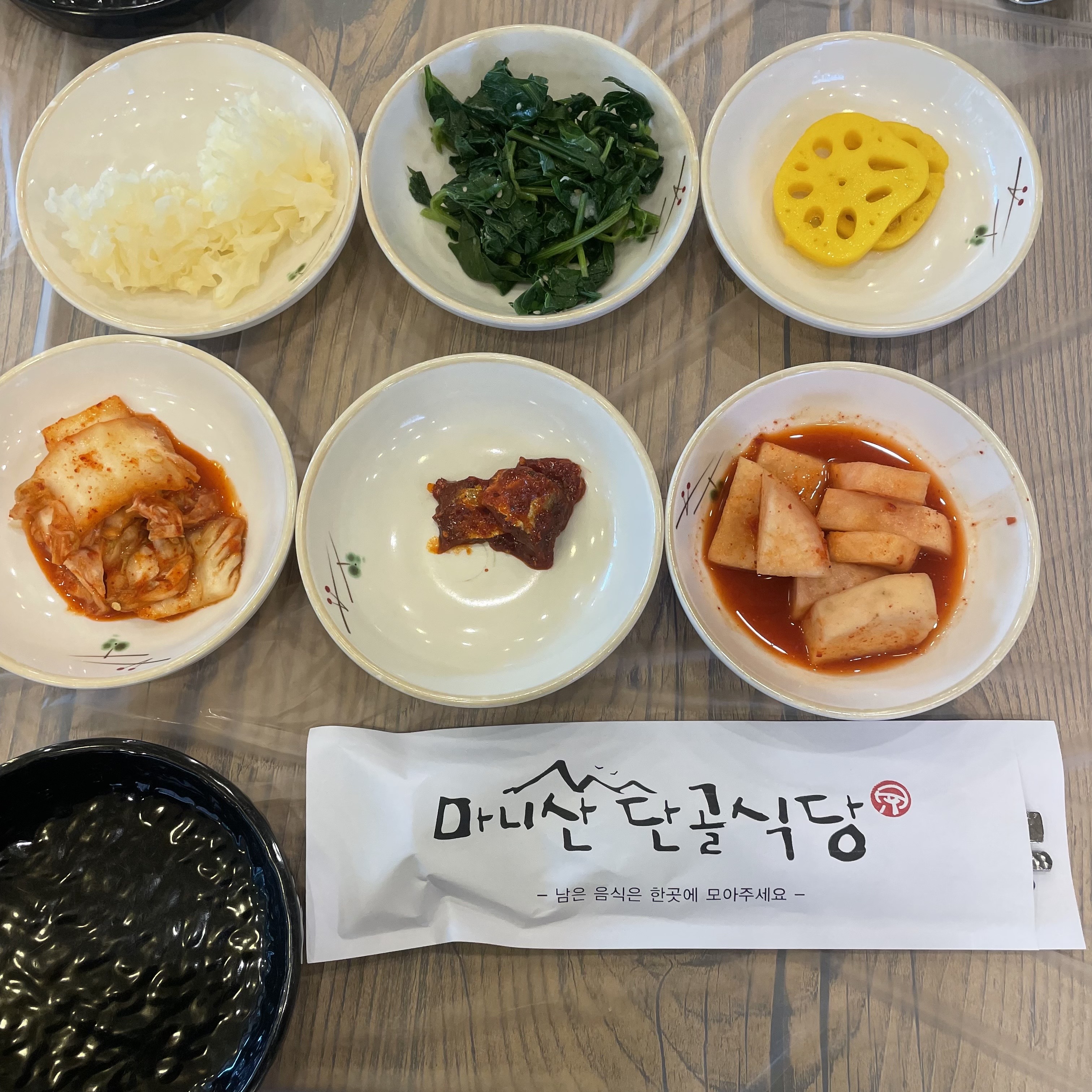 기본 상차림입니다. 여기서도 강화도만의 대표반찬들을 만날 수 있습니다. 왼쪽 위에서부터, 하얀목이버섯, 나물, 연근,순무김치, 벤댕이젓, 김치. 밑반찬들이 모두 깔끔하고 맛있습니다. 특히나 순무김치는 강화도의 대표 음식!!