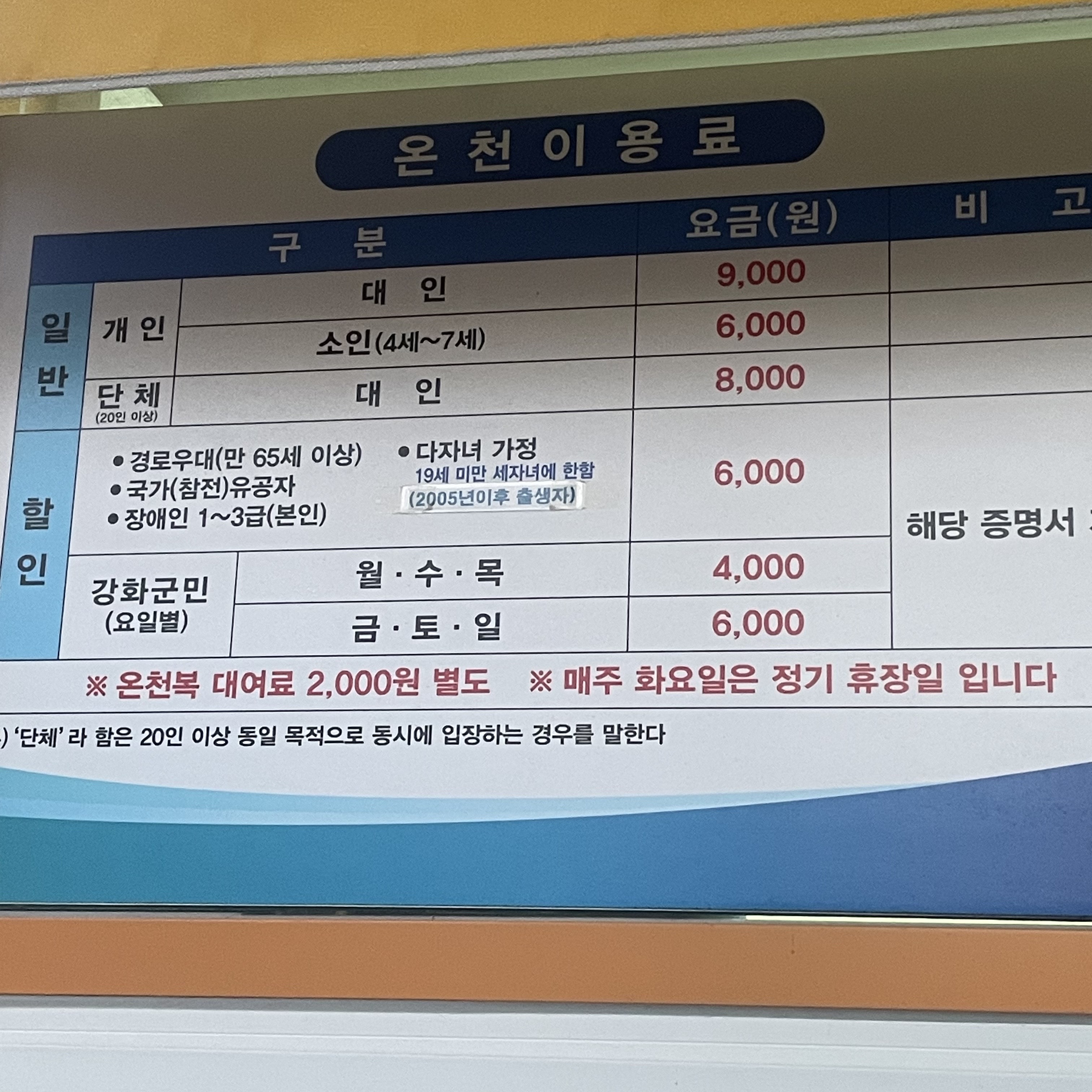 | ※ 온천복 대여시 대여비 별도 - 2,000원 |