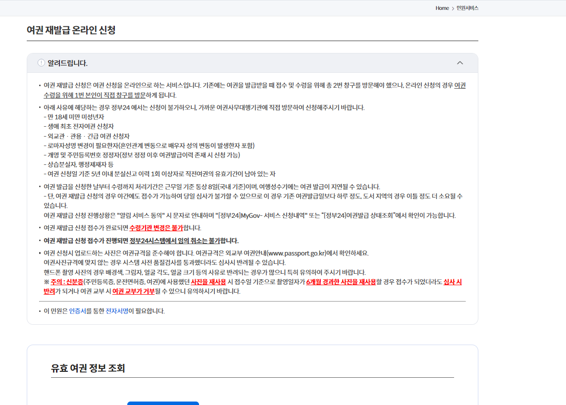 여권 갱신 및 재발급 방법(온라인)