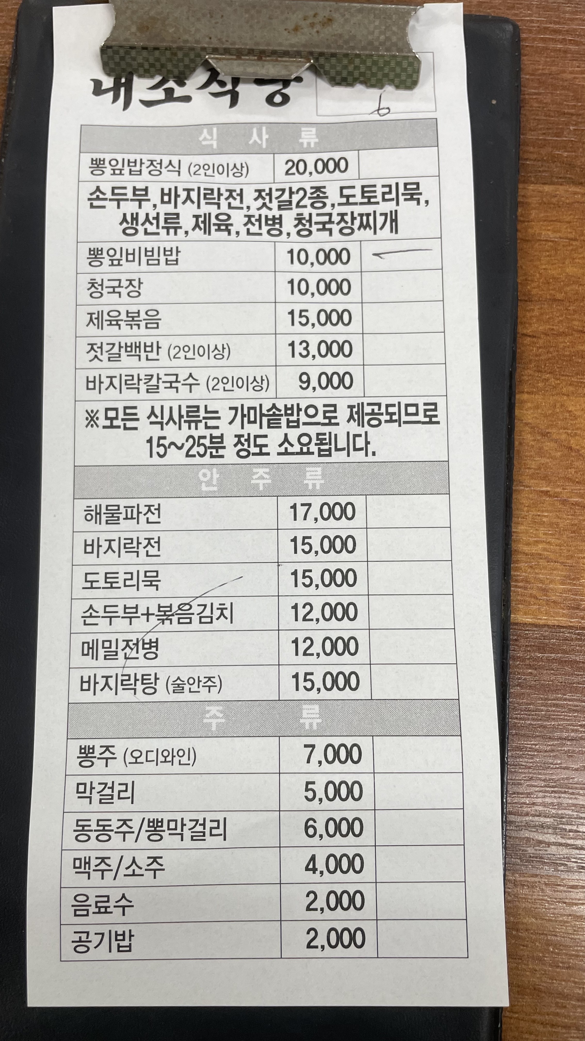 내소식당 메뉴들입니다. 관광지이지만 가격들이 나쁘지 않았어요. 특히나 뽕잎비빔밥과 청국장과 같이 식사류는 요즘 물가 대비 합리적이었습니다. 해물파전은 주문을 안해봐서 모르겠지만.... 만칠천원.....   흠.....    후기들이 괜찮으것 보면 그정도의 만족감을 주고 있을거라 추측만 해봅니다.