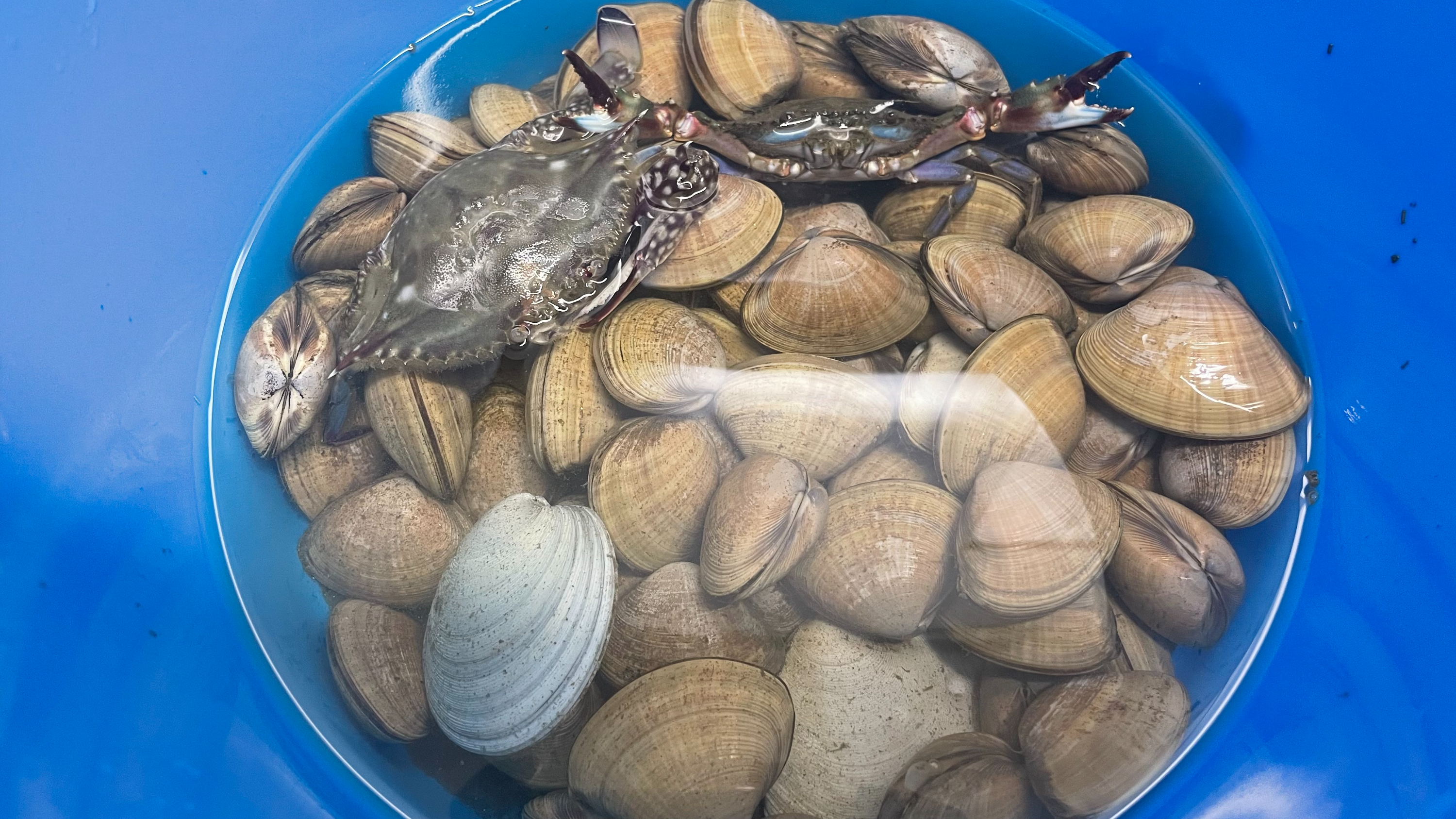 고사포에서 쉽게 잡을 수 있는 조과: 떡조개, 동죽, 맛조개, 게, 골벵이(큰 녀석은 못만나서 다 살려줌)