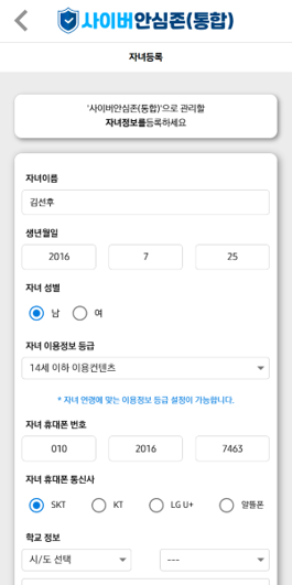 #사이버안심존_부모용 #사이버안심존- 자녀용