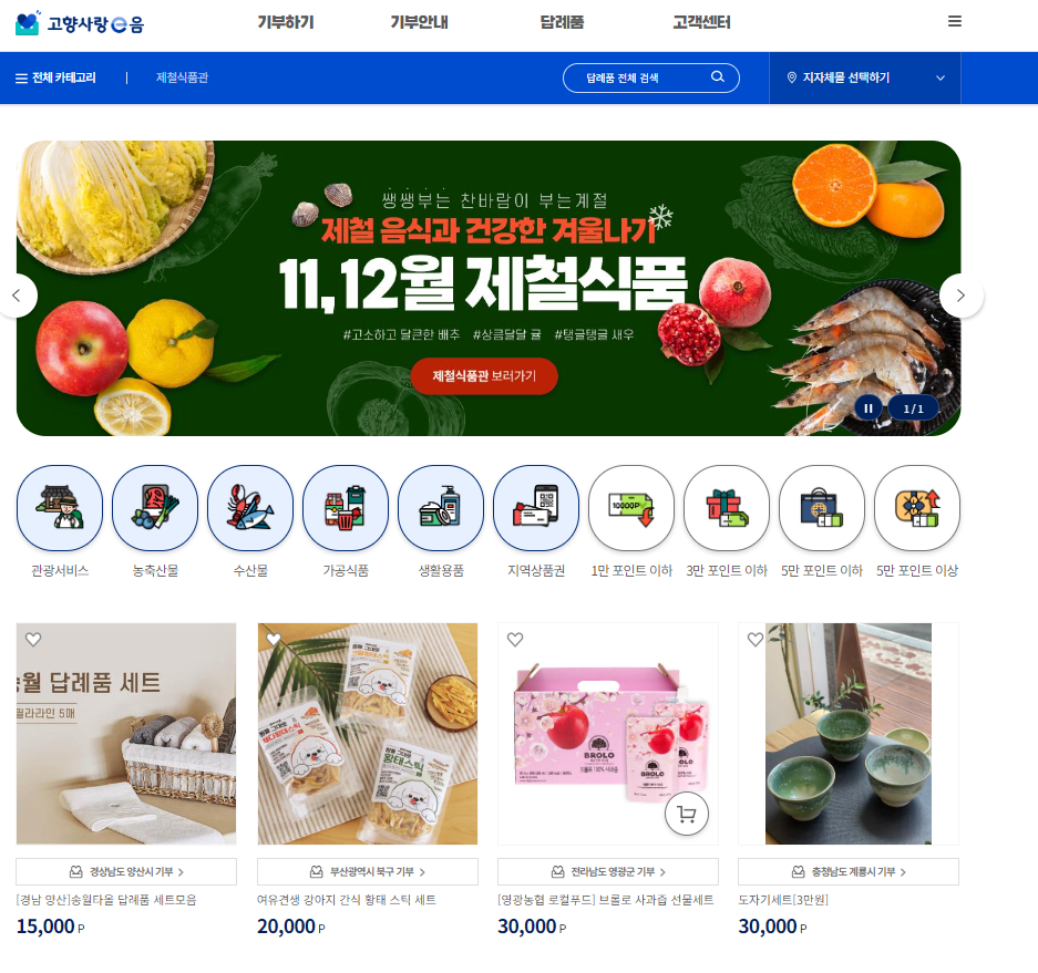 ※ 기부하기 팁! - 기부하기 전에 답례품 품목을 확인하시고 자신이 받고 싶은 답례품을 먼저 확인한 후!!! 해당 지역에 기부하면 원하는 답례품을 받을 수 있습니다.