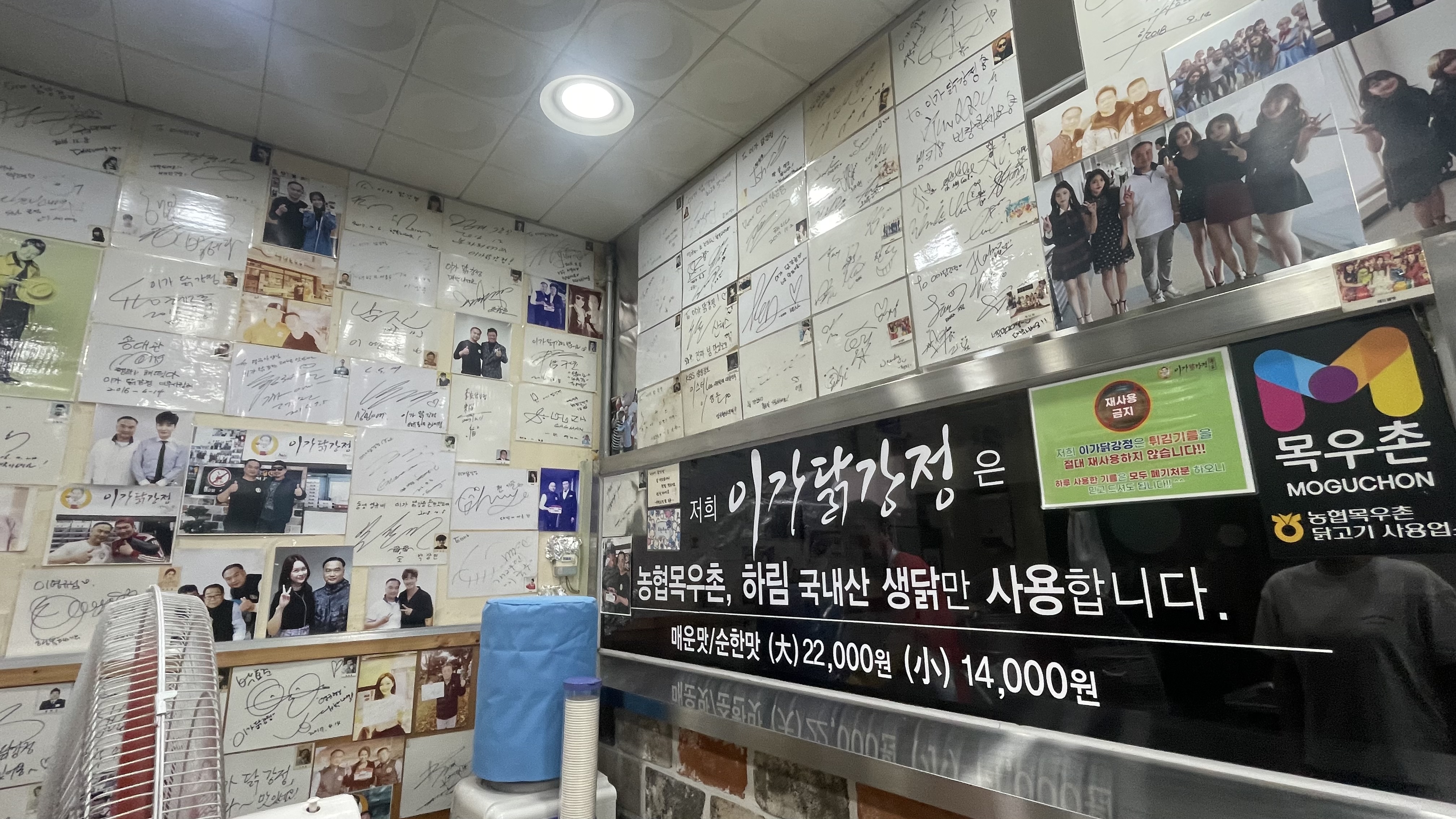 ▶ 벽면을 가득 채운 유명인들의 싸인은 이가 닭가정의 명성을 말해줌
