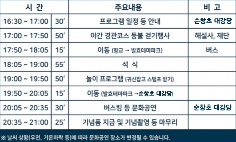 문화공연시간에는 어른들도 함께 즐길 수 있는 공연들이 준비되어 있다고 합니다. 마술쇼와 밴드 공연 등으로 행사의 마무리를 한다고 합니다.