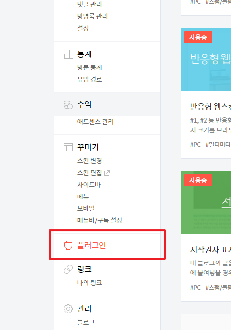 구글번역기를 설치하기 위해서는 플러그인의 배너출력을 사용해야 합니다. 관리자 모드 메뉴에서 플러그인을 선택하여 배너출력을 적용시켜줍니다. 그럼 오른쪽 사진과 같이 배너출력에 사용중이란 딱지가 뜨면 준비 끝!!